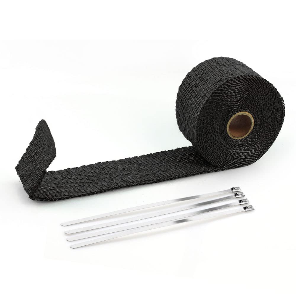 商品名:MUGE 耐熱布サーモ 排気熱ラップ耐熱サーモ バンテージ 玄武岩繊維 グラスファイバー製 車・モートーバイクに適用 耐熱1200度 (黒, 5m)