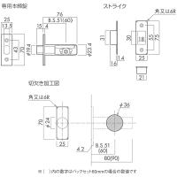 シリンダー・サムターン錠、(ラッチ部)サムターン専用ラッチ、(フロントプレート)角