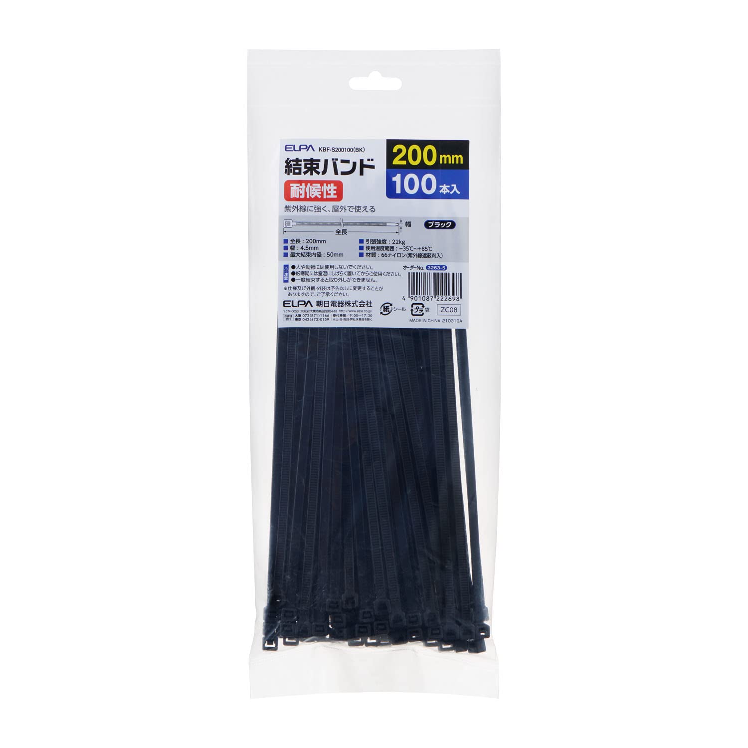 商品名:エルパ (ELPA) 結束耐候 200mm 黒 KBF-S200100(BK)