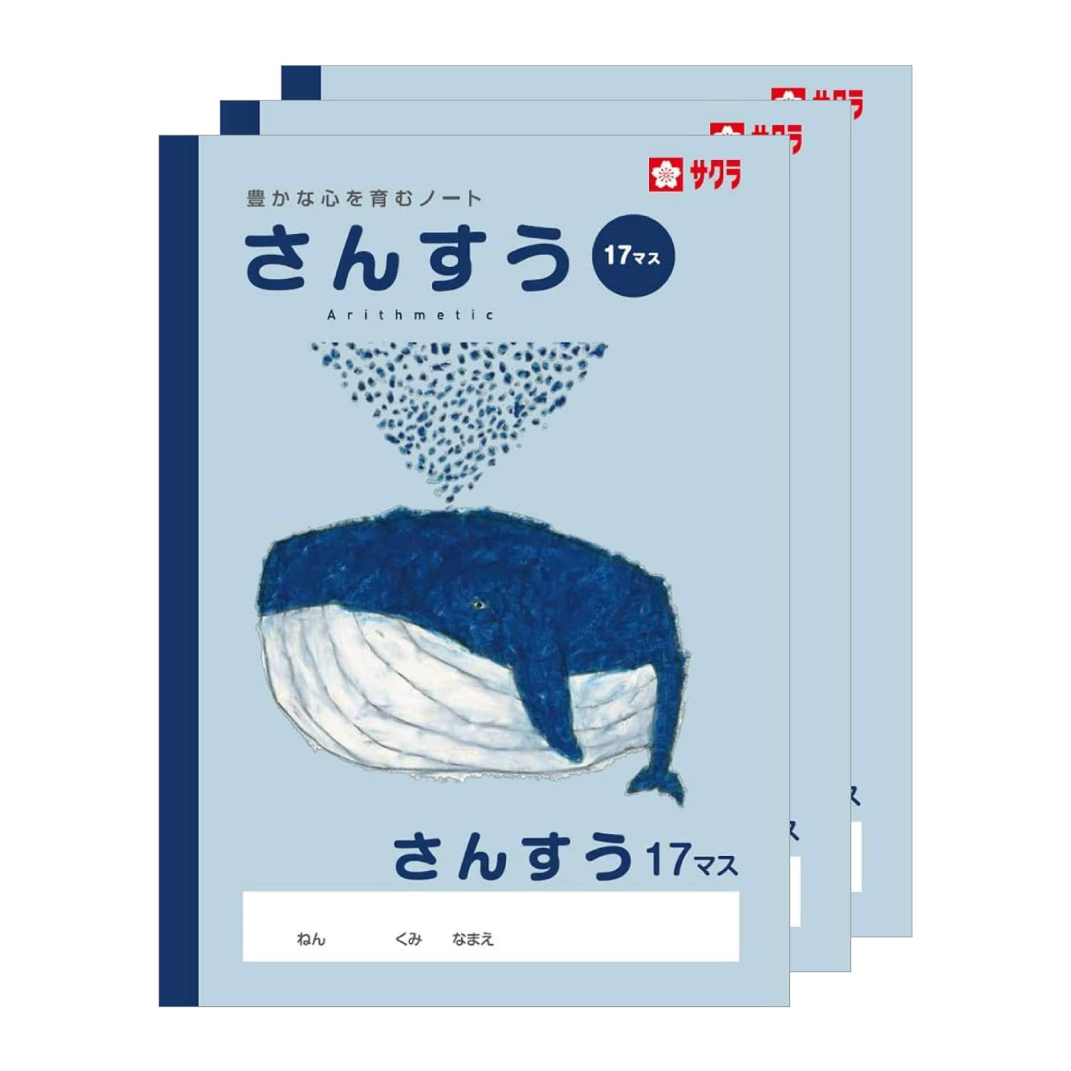 サクラクレパス 学習帳 さんすう 17マス B5 米津祐介 デザイン クジラ 3冊 NP4(3)