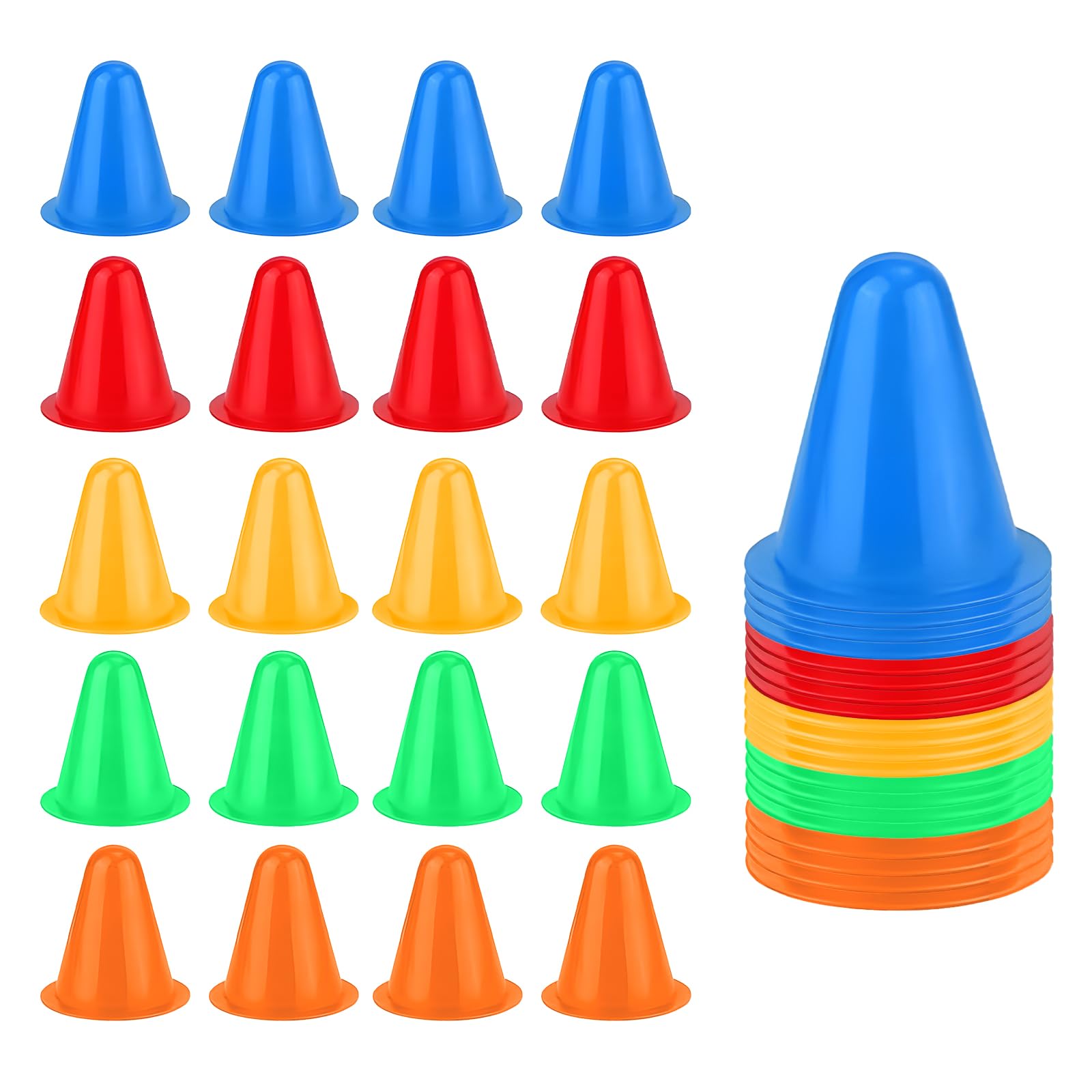 【製品は以下を含む】マーカーコーンx20個。(赤x4、青x4、緑x4、オレンジx4、黄x4)豊富なカラーバリエーション。