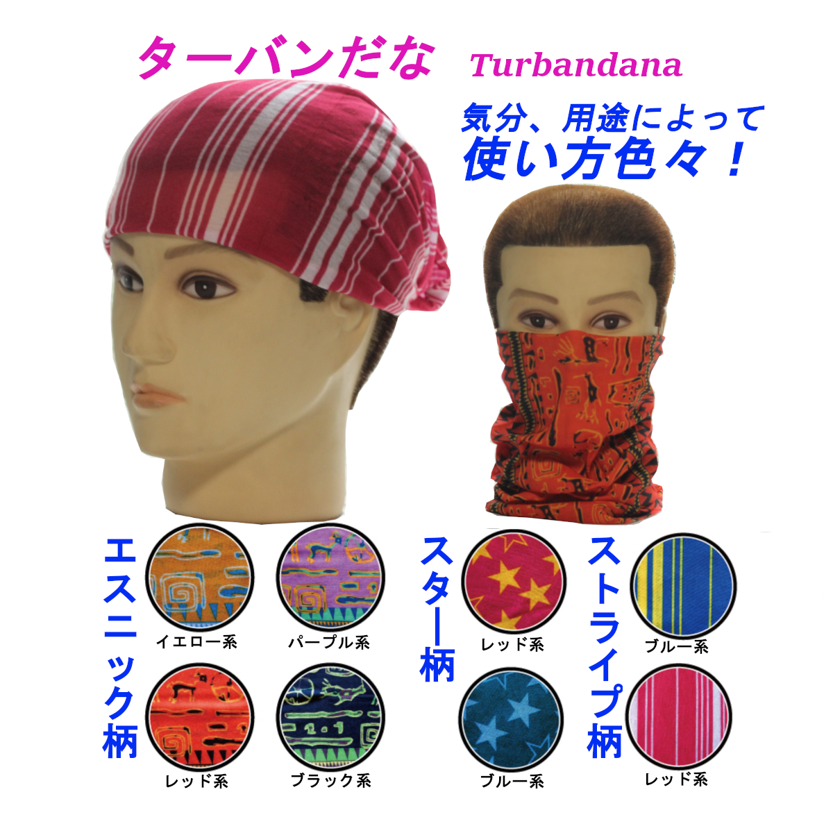 | 商品名 | turbandana ターバンダナ 【エスニック柄】【スター柄】【ストライプ柄】 |