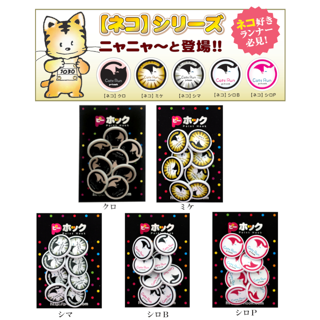 ゼッケン留め ピーホック 【P HOCK】シリーズ ネコ【CAT】 マラソン大会 運動会 Tシャツのワンポイント ダンス衣装の仮留め アクセントなど