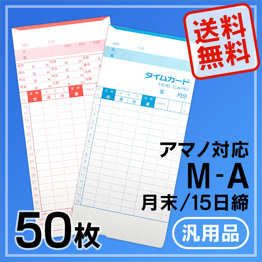 アマノ用 タイムカード Aカード対応 汎用品 M-A(月末/15日締)50枚