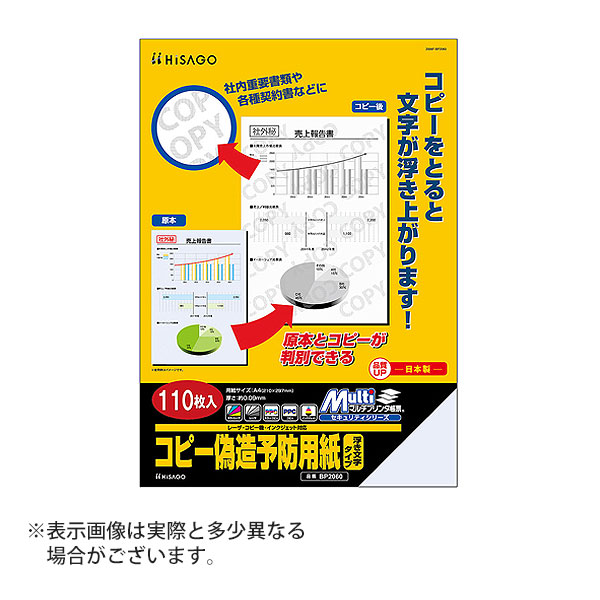 ヒサゴ マルチプリンタ帳票 コピー偽造予防用紙 浮き文字タイプ A4 (110枚入)
