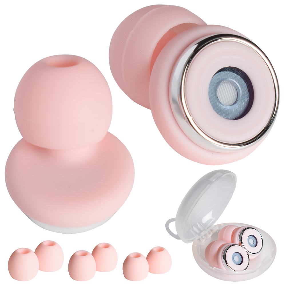 耳栓 ピンク SNR35dB 高遮音 シリコン製 プラグ型デザイン ノイズカット 繰り返し使える 睡眠 勉強 音楽 ライブ 飛行機 通勤に 専用収納ケース付き
