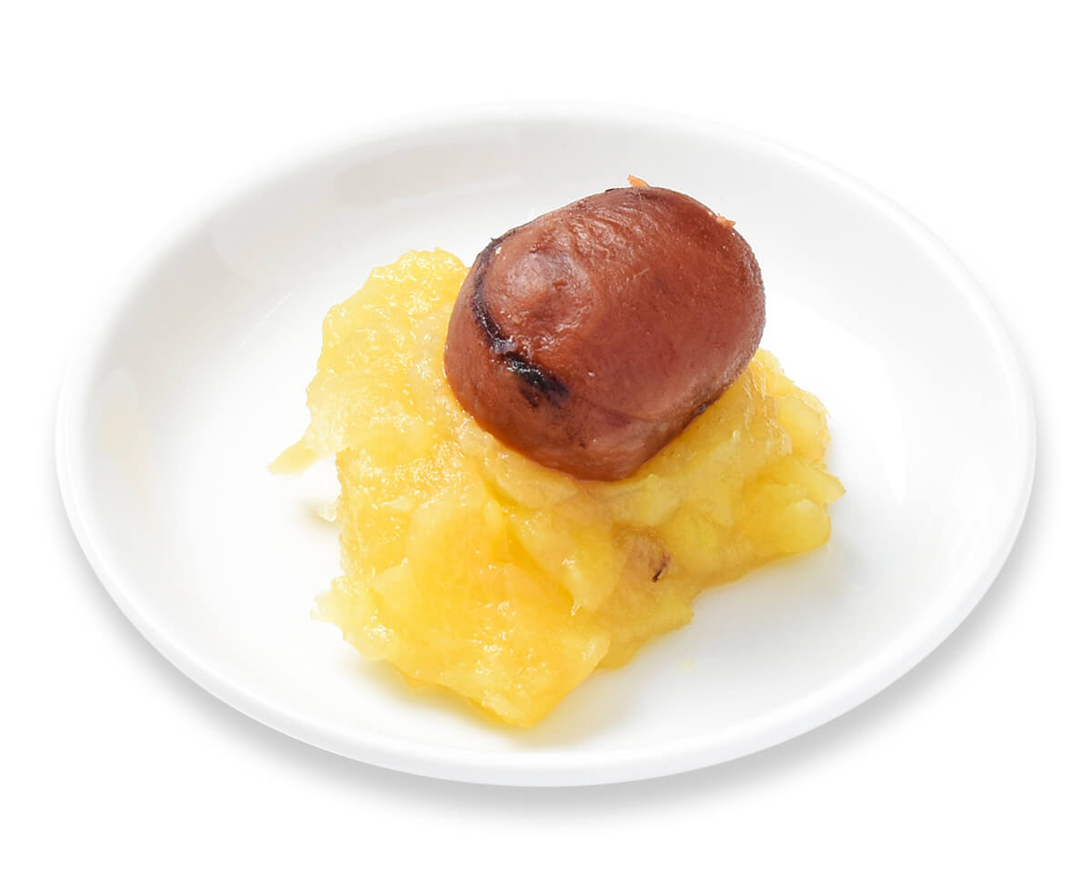 マロンとりんごのコンポートをきんとんで和えブランデー“カルバドス”で香り付け。