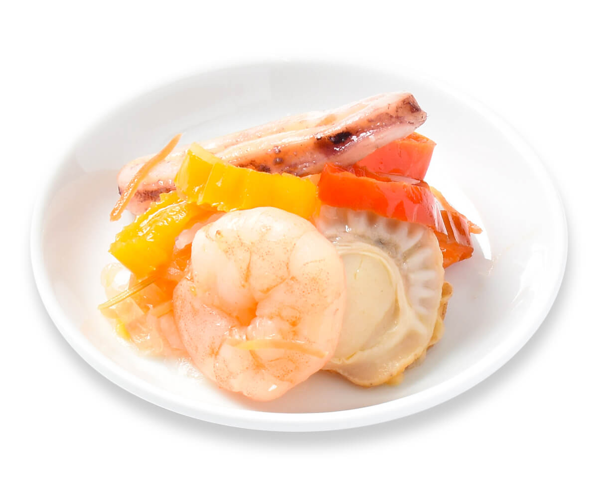 エビ・いか・ホタテを白ワインヴィネガーとオリーブオイルで和えたシンプルな料理です。