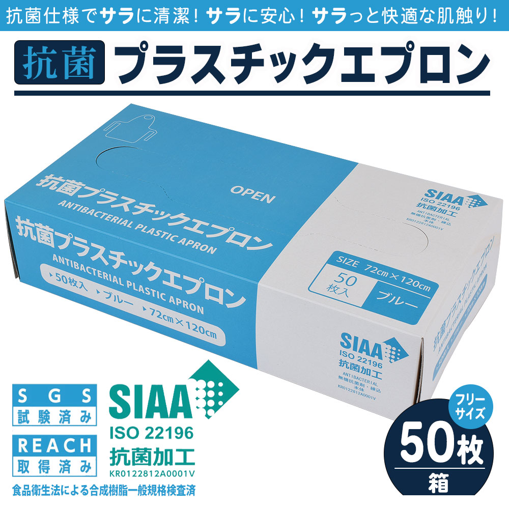 抗菌 プラスチックエプロン 使い捨て 袖なし 50枚入り2個セット(100枚) 抗菌加工
