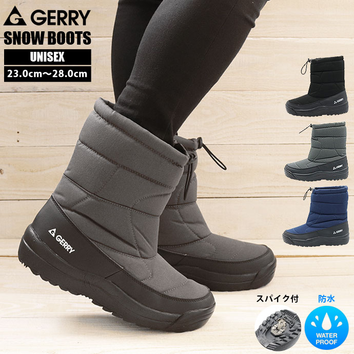 耐水圧5,000mm スノーブーツ ジェリー GERRY ユニセックス ウインターブーツ 収納可能スパイク付 防水 防寒 長靴 スノーブーツ 雪靴 冬靴 防寒靴 冬