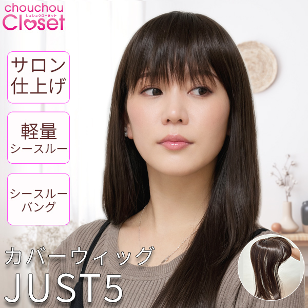 サロン仕上げ ヘアピース ロング シースル ヘアピース カバーウィッグ JUST5薄毛のカバー 頭頂部 つむじ付き人工頭皮