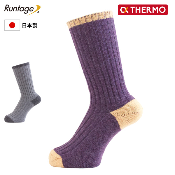 ローゲージのリブ編みを採用し、つま先・かかと・履き口のみ色をチェンジしたシンプルな 2トーンのデザイン。タウンユースにもフィットします。 | ||||||||||||||