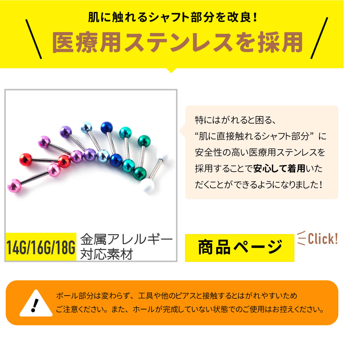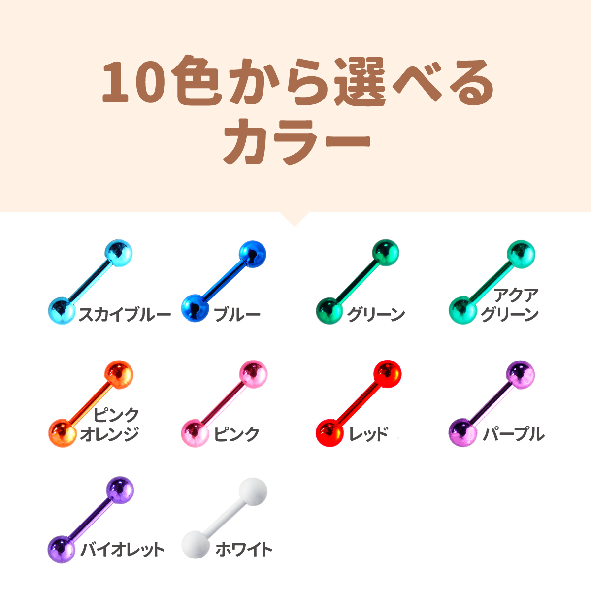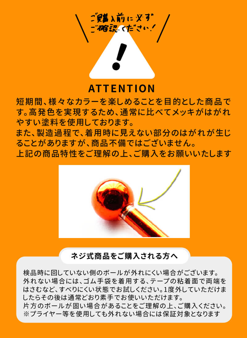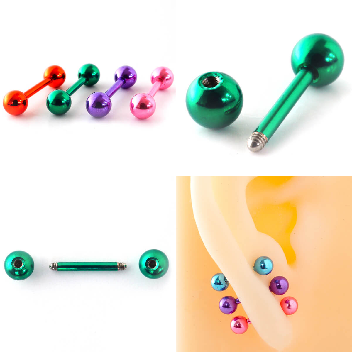 高発色カラーバーベル 14G 16G 18G 軟骨ピアス ボディピアス