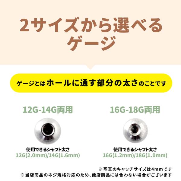 太さ12G,14G,16G,18G ボール4mm〜5mmのキャッチ パーツです。