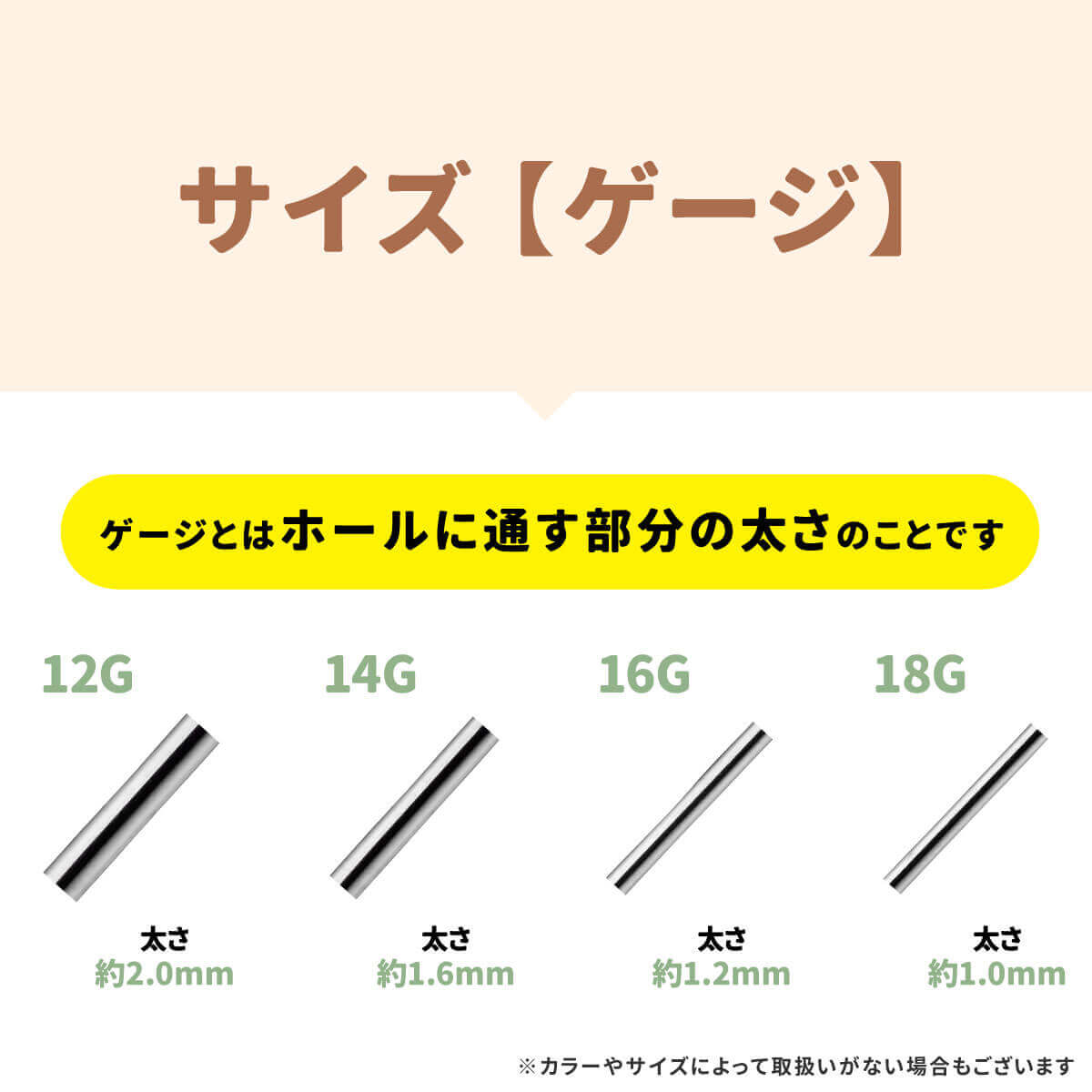 太さ12G,14G,16G,18G シャフト長さ4mm〜8mm パールサイズ3mm〜10mmのストレートバーベルです。