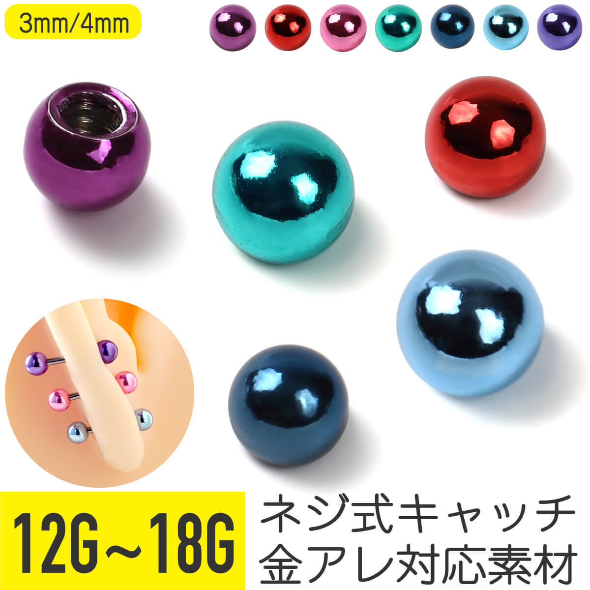 高発色カラーボール 12G 14G 16G 18G 軟骨ピアス ボディピアス