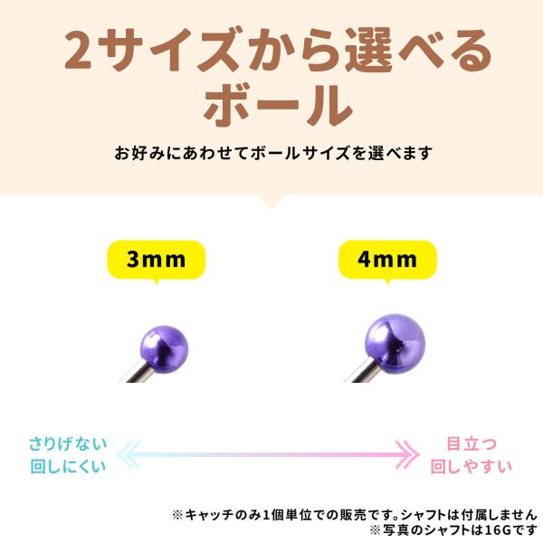 太さ12G,14G,16G,18G ボールサイズ3mm〜4mmのキャッチ パーツです。
