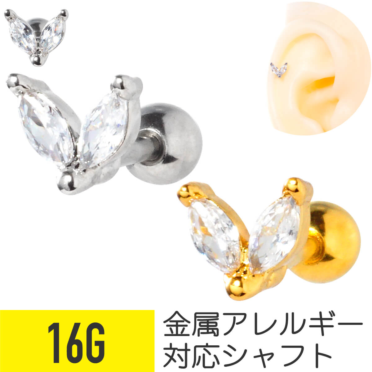 V リーフ ジュエル ストレートバーベル 16G 軟骨 ボディピアス