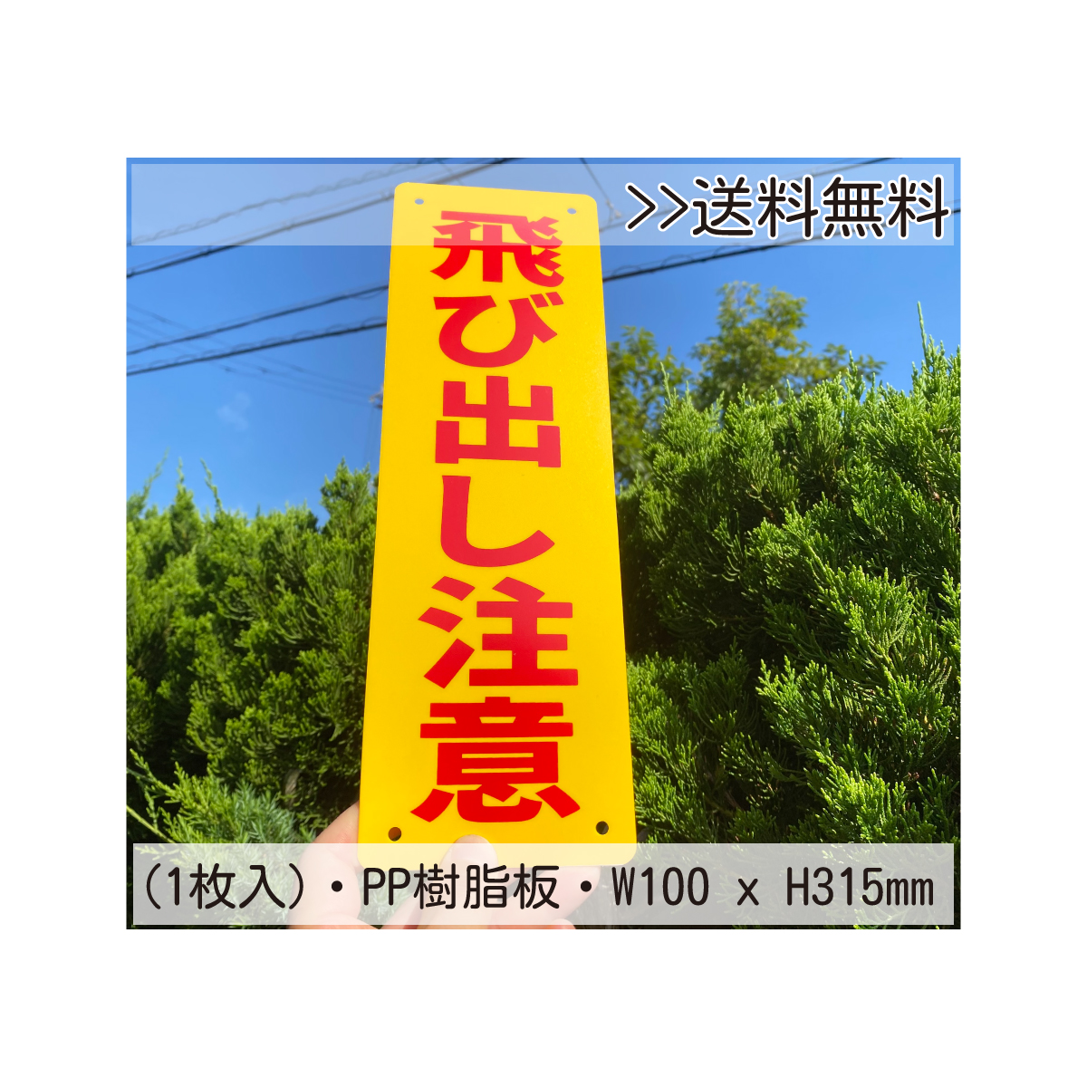 送料無料 激安看板 『飛び出し注意』PP板 約W100×H315ミリ 安全表示幕 注意喚起 注意案内看板 耐水 屋外対応 日本製