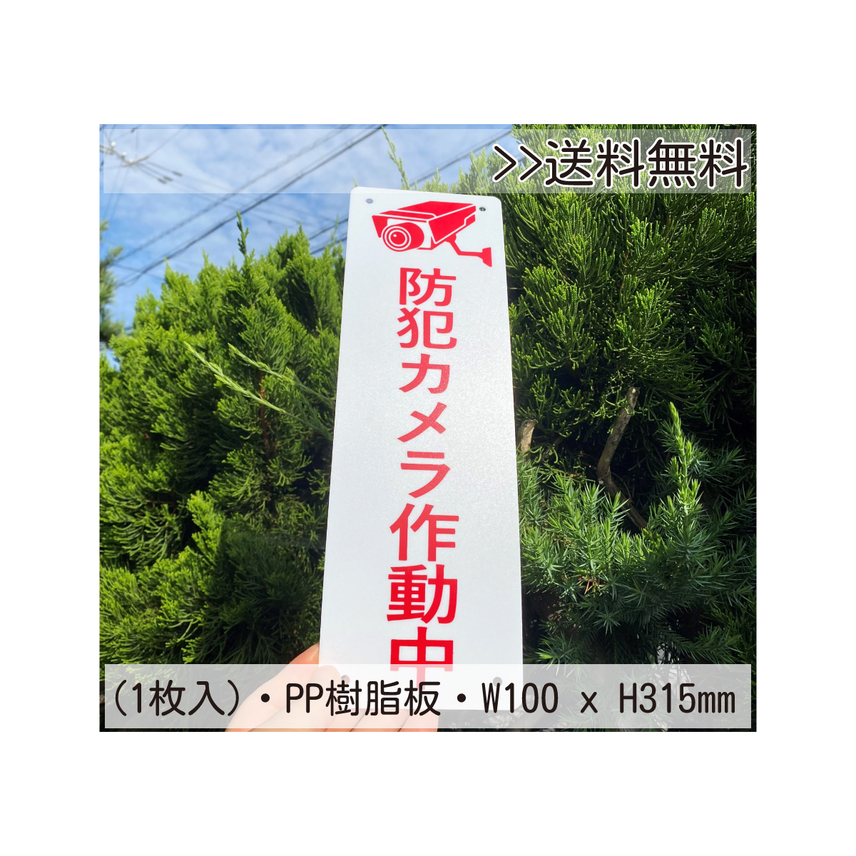 送料無料 激安看板 『防犯カメラ作動中』PP板 約W100×H315ミリ 安全表示幕 注意喚起 注意案内看板 耐水 屋外対応 日本製