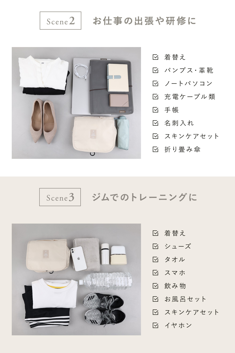 小さなお子さまとのお出かけ、お仕事の出張や研修、ジムやトレーニングなど――