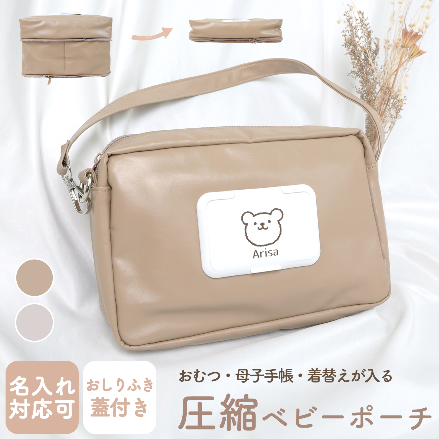 圧縮おむつポーチ ショルダー おしりふき内蔵 ベビーポーチ おむつ入れ おしりふき ウェットテッシュ 持ち運びバック マザーズバック 赤ちゃん 着替え 旅行
