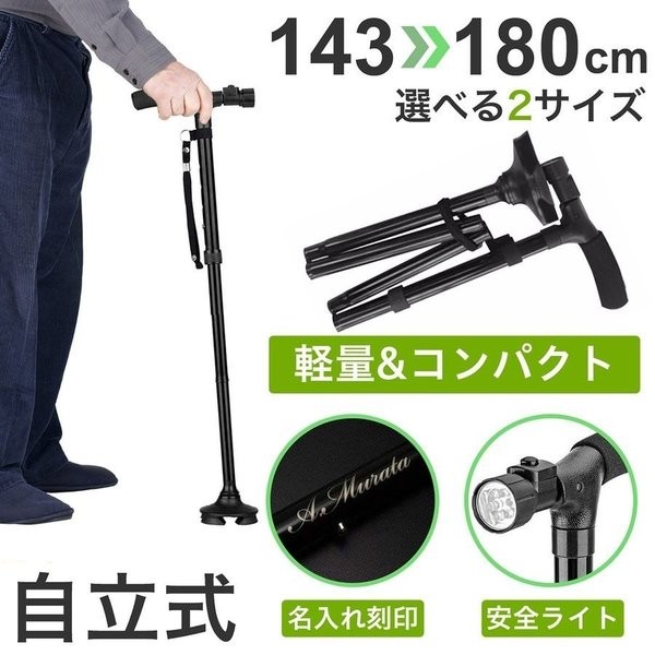 [在庫処分] 杖 介護 おしゃれ 折りたたみ 女性 男性 杖の先がゴム 自立式 名入れ LEDライト ステッキ 5段階 4点 補助 介護 ライト付き ブザー 敬老の日