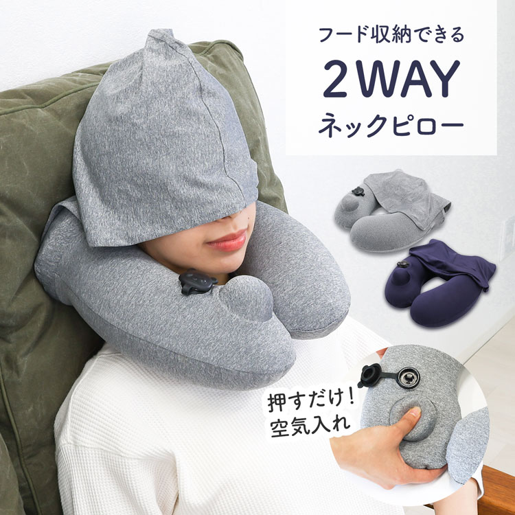 ネックピロー 飛行機 車 子供 首枕 エアー 携帯枕 空気 フード付き 旅行用 コンパクト おすすめ 夜行バス 新幹線 ポンプ式 U型枕 エアピロー 旅行グッズ 快適