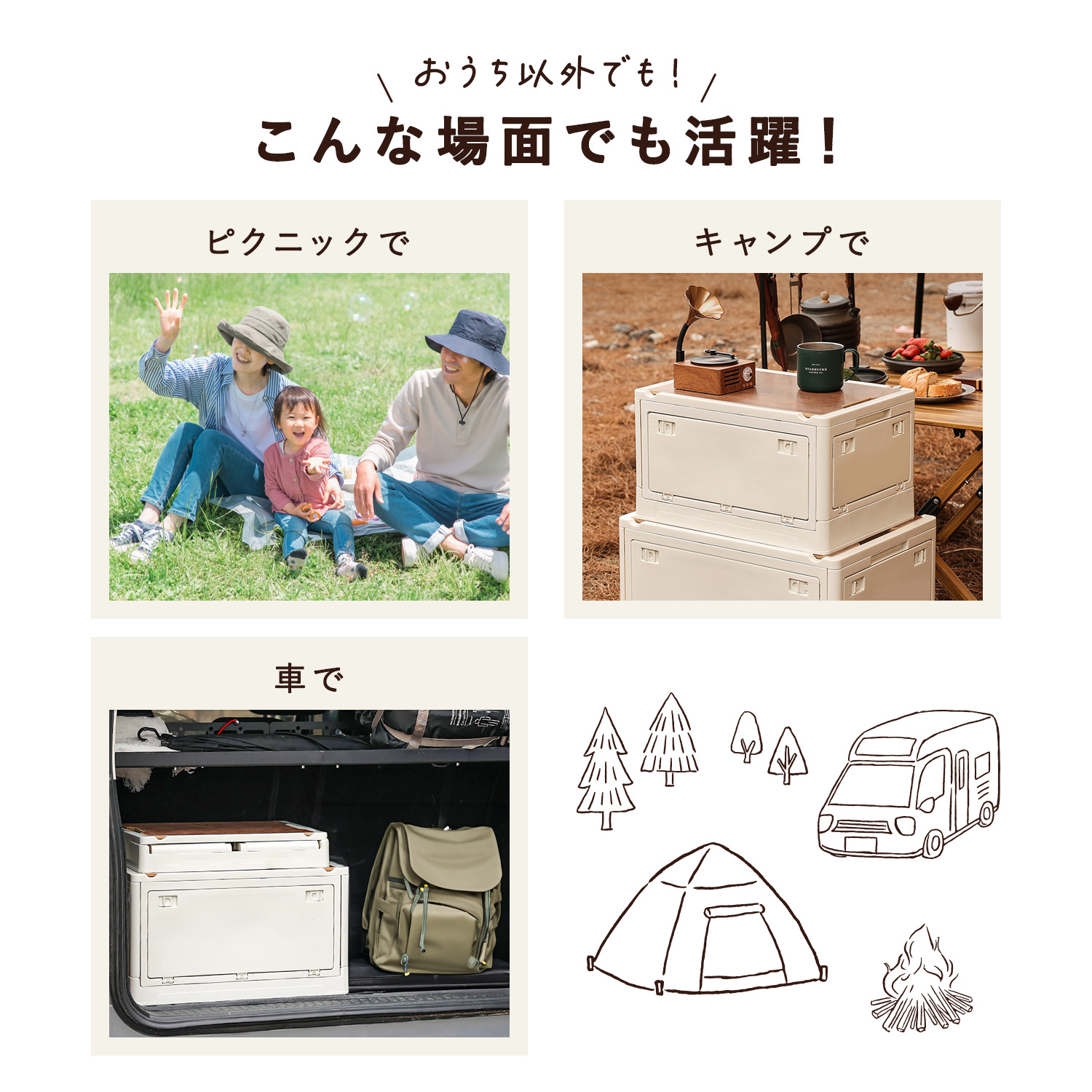 折りたためば厚さはわずか7cm! たっぷり収納できるコンテナなのに、使わない時はコンパクトに隙間に置いておける!