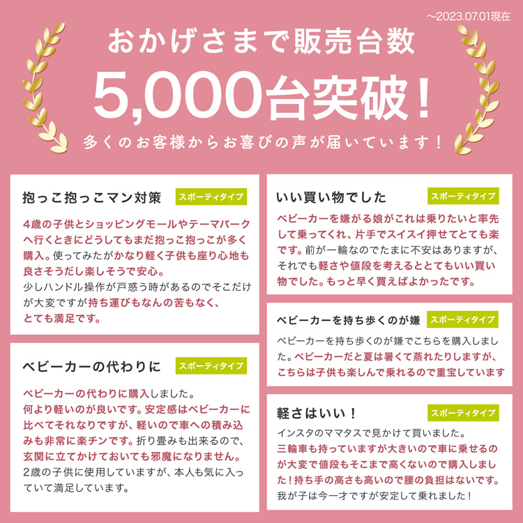 普通のベビーカーと異なるスタイリッシュなデザインなので、ベビーカー嫌いなお子さまでもアトラクション感覚で喜んで乗ってくれますよ♪