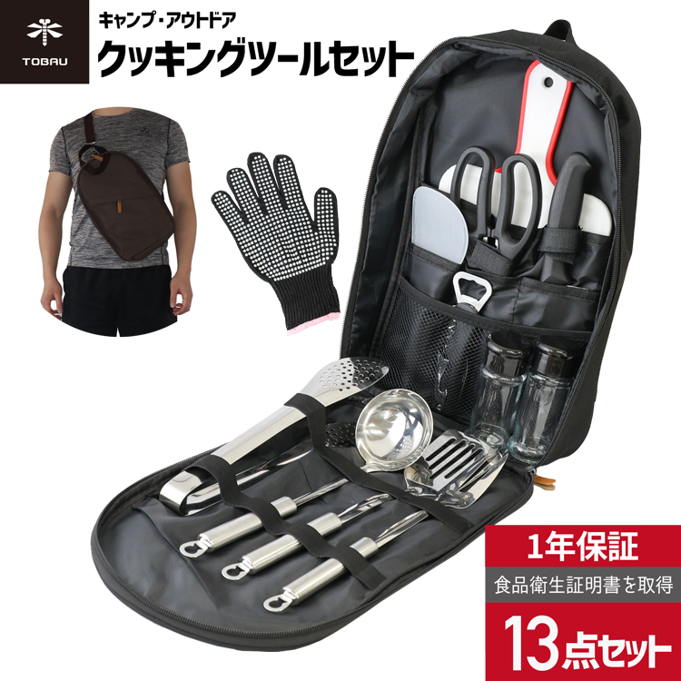 調理器具 調理道具 セット アウトドア キャンプ TOBAU アウトドア用品 キャンプ用品 バーベキューセット トング 13点 キャリーバッグ 収納バッグ 包丁 ナイフ