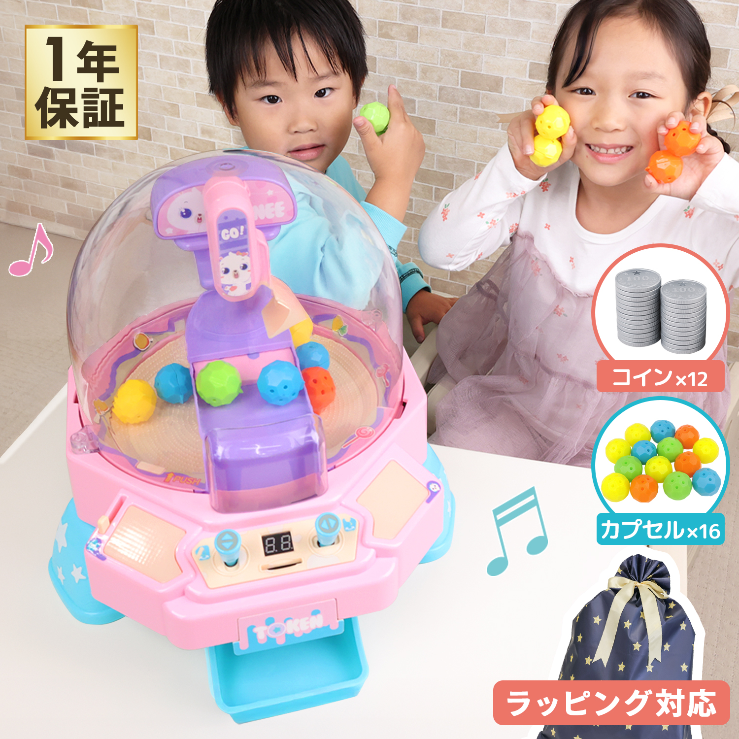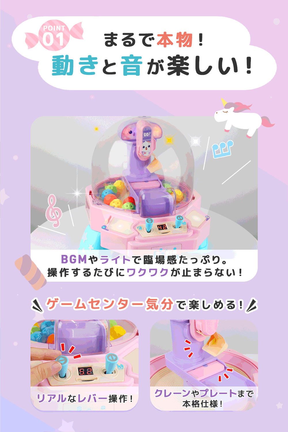 光と音が楽しい本格クレーンゲーム。たっぷり入ってるカプセルで家族みんなで盛り上がろう!