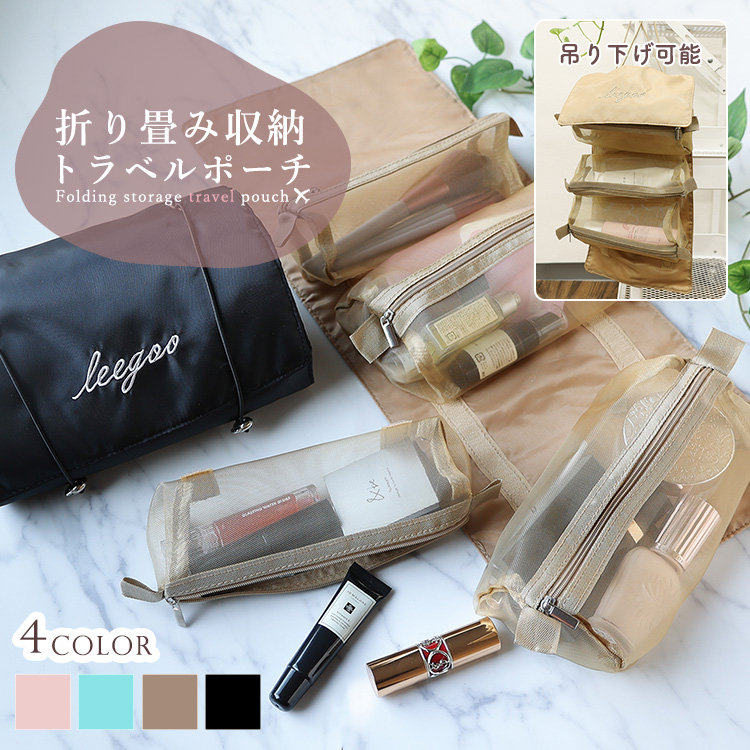 トラベルポーチ 圧縮 吊り下げ アメニティーポーチ 化粧ポーチ メイクポーチ コスメポーチ バッグ 旅行用 取り外し コンパクト 小分け おしゃれ フック付き 収納
