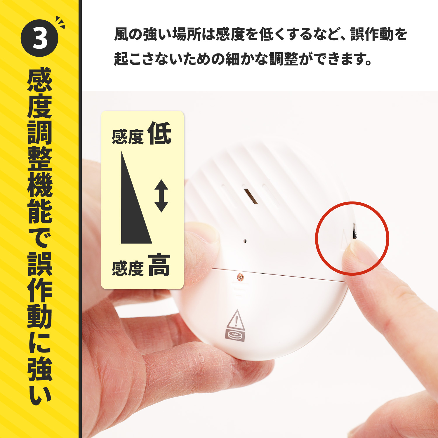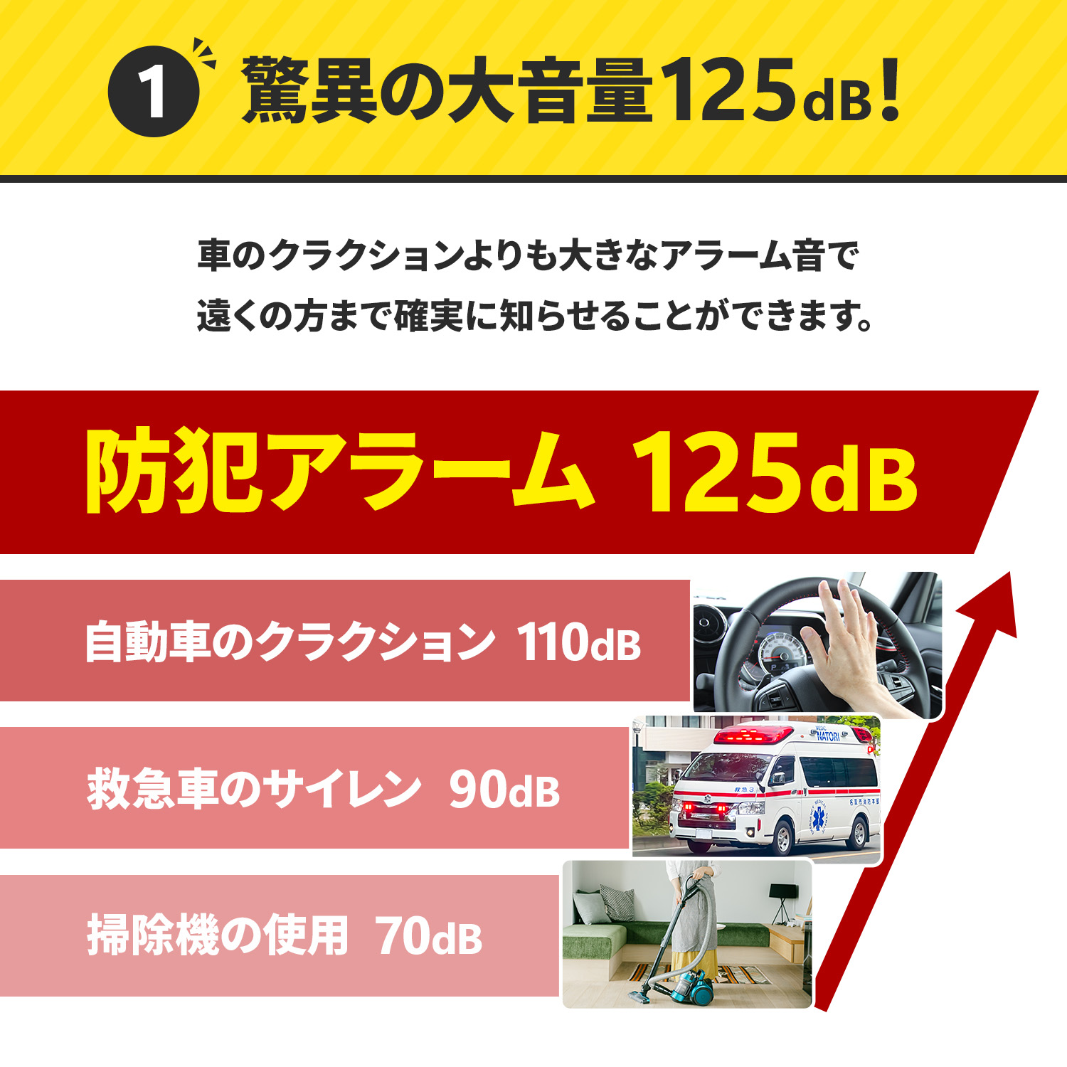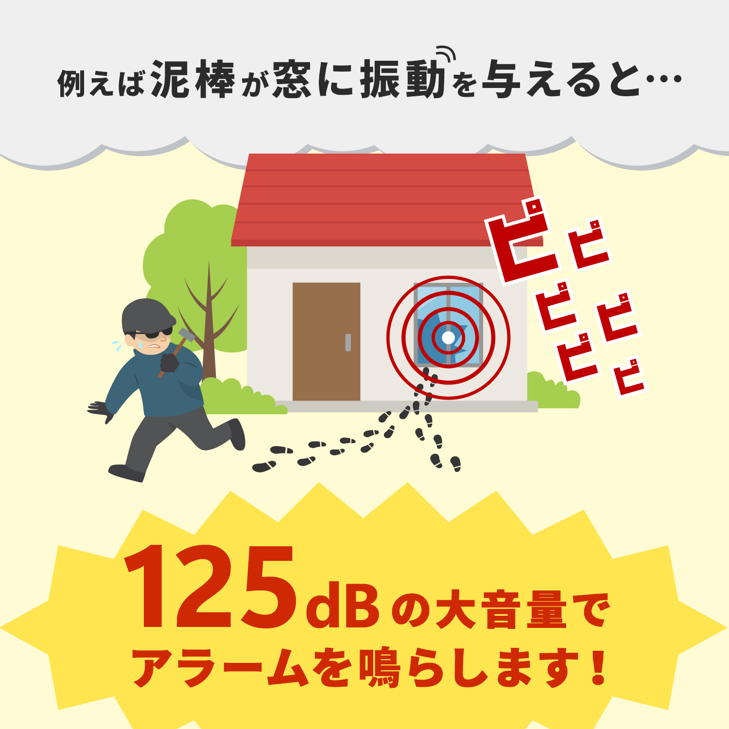 例えば泥棒が窓を叩いたり強く揺さぶったりと振動を与えると…大音量でアラームを鳴らして周囲に響き渡らせます!