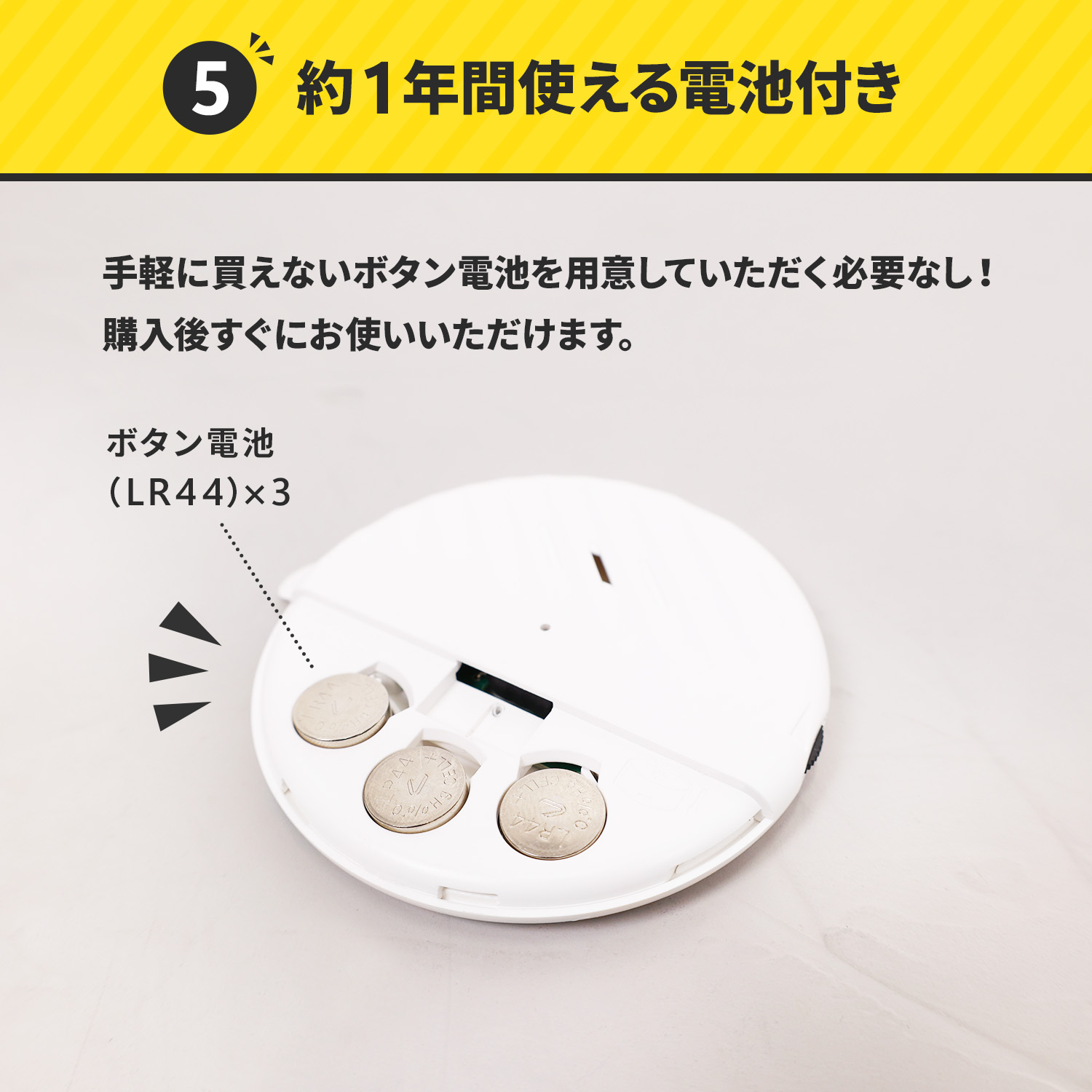 手軽に買えないボタン電池が最初から入っているのでご用意いただく必要はありません!購入後すぐにお使いいただけて約1年間ご使用できます。