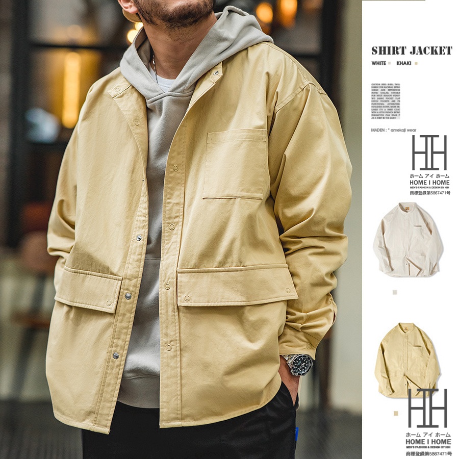 バンドカラー シャツジャケット メンズ 長袖 カジュアルシャツ 綿100 大きいサイズ ワーク アメカジ ポケット 長袖シャツ トップス アウター 羽織り ゆったり オシャレ 春夏 ライトアウター コットン カジュアル きれいめ 大人 シンプル デイリー 30代 40代 50代