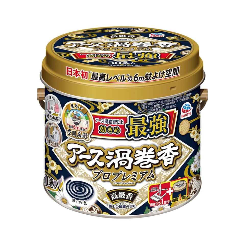 アイテム 1個 アース製薬 渦巻香 蚊とり線香 プロプレミアム 30巻 缶入
