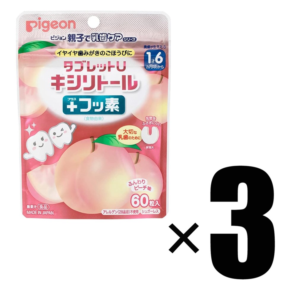 アイテム 3個 ピジョン 親子で乳歯ケア タブレットU キシリトール+フッ素 ふんわりピーチ味 60粒入×3