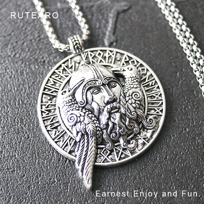 ネックレス メンズ 北欧神話 シルバー オーディン ペンダント 神 カラス 動物 ルーン文字 お守り アクセサリー