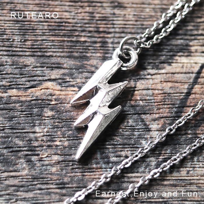 稲妻 ネックレス ペンダント 雷 メンズ シンプル 音楽 雷撃 シルバー 電撃 パンクロック 英語 アクセサリー