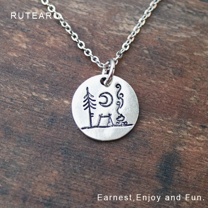 アウトドア ネックレス アクセサリー ロング テント キャンプ用品 レディース メンズ 焚き火 月 シルバー 森 お守り