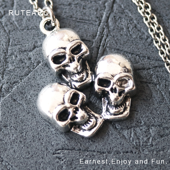 スカル ネックレス メンズ 骸骨 髑髏 顔 頭 シルバー どくろ パンクロック アクセサリー 魔除け