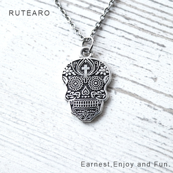 ドクロ ネックレス メンズ レディース ペンダント スカル 骸骨 ロック 十字架 髑髏 カジュアル