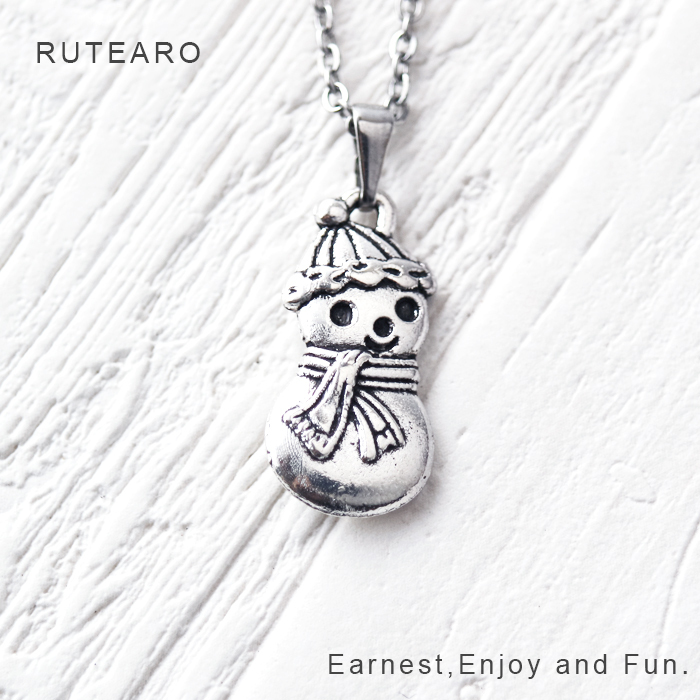 雪だるま ネックレス レディース ペンダント 冬 可愛い スノー シルバー マフラー アンティーク調
