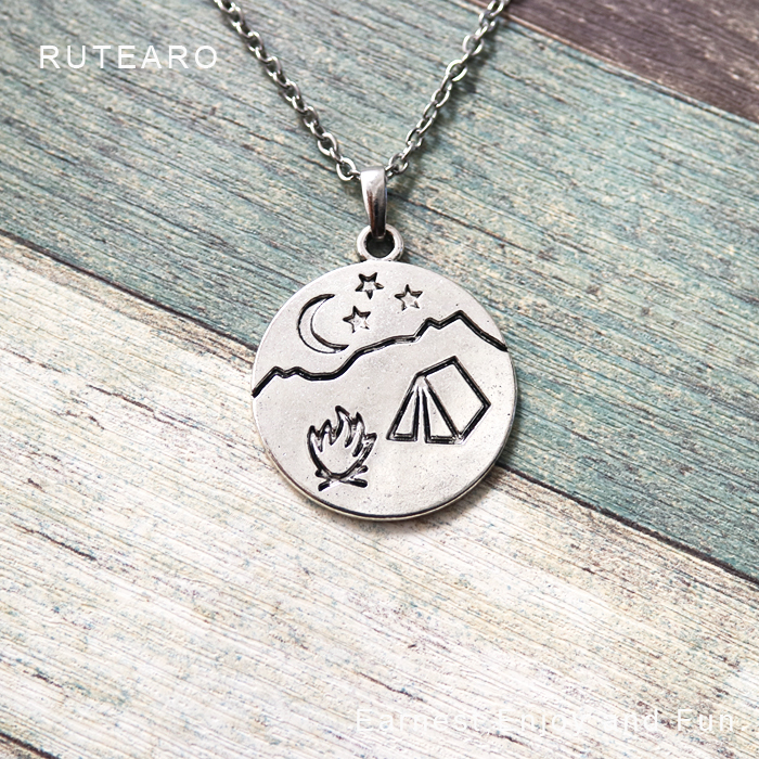 アウトドア ネックレス キャンプ アクセサリー メンズ レディース プレゼント 夏 月 グッズ キャンプファイヤー