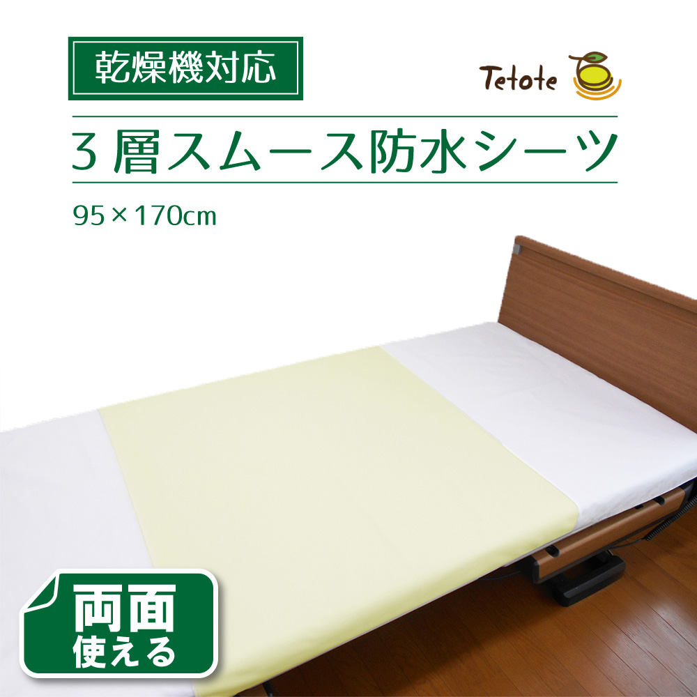 防水シーツ シングル 介護 乾燥機対応 【3層スムース 部分用】 両面使える 95×170cm ラバーシーツ おねしょ 洗える 抗菌 耐熱 施設 病院 Tetote MT-7040