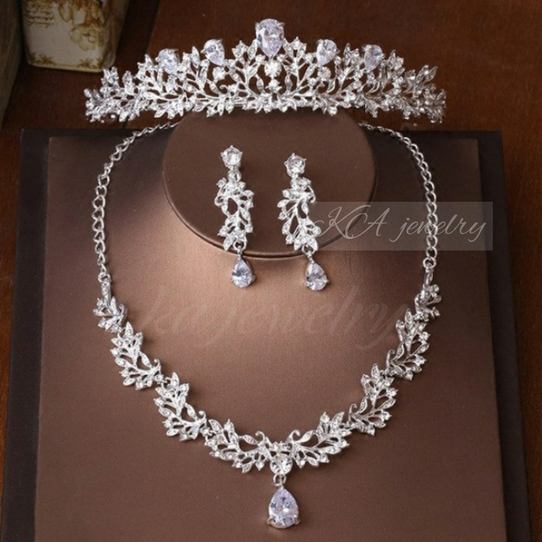 ティアラ ネックレス イヤリング ピアス 3点セット 結婚式 ウェディング キュービックジルコニア ウエディング 髪飾り ヘッドアクセサリー