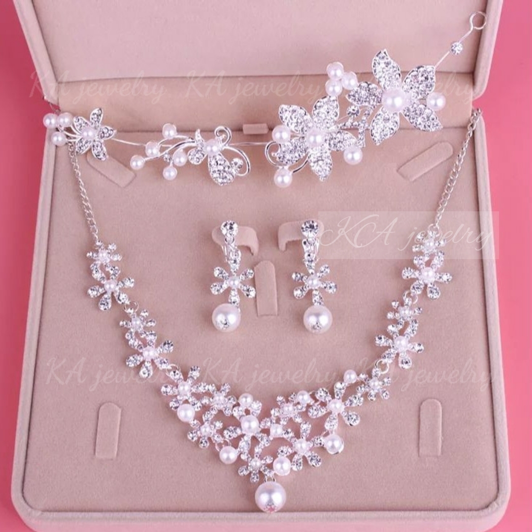 パール ヘッドドレス ネックレス イヤリング ピアス 3点セット 結婚式 ヘアアクセサリー 髪飾り ヘッドアクセサリー ウェディング ブライダル 花嫁