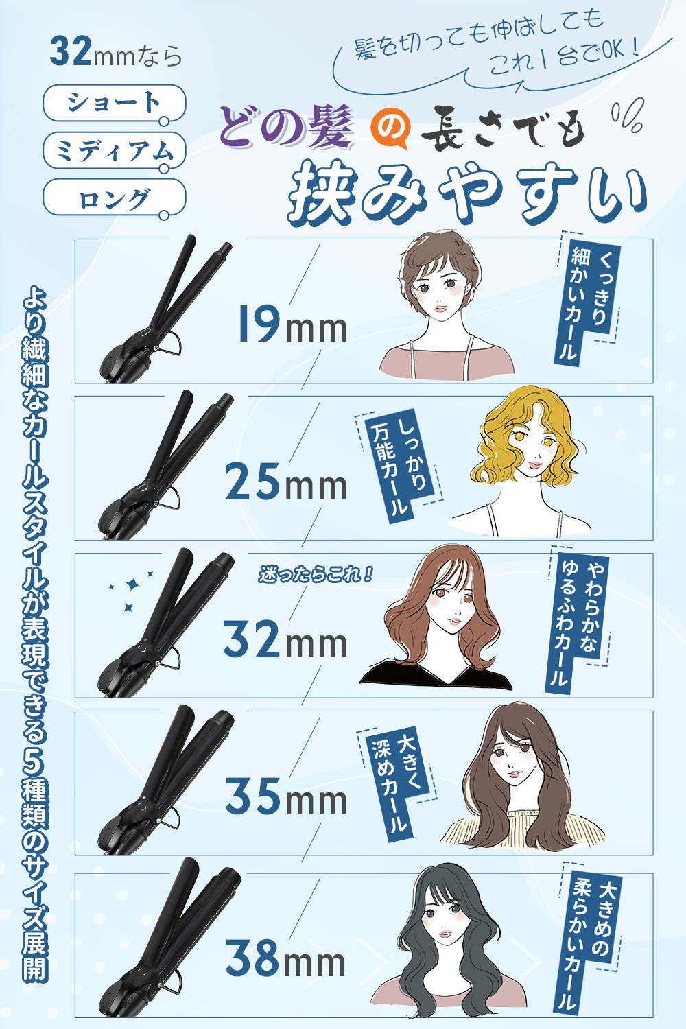 コテ 38ミリ 35ミリ 32ミリ 25ミリ 19ミリ