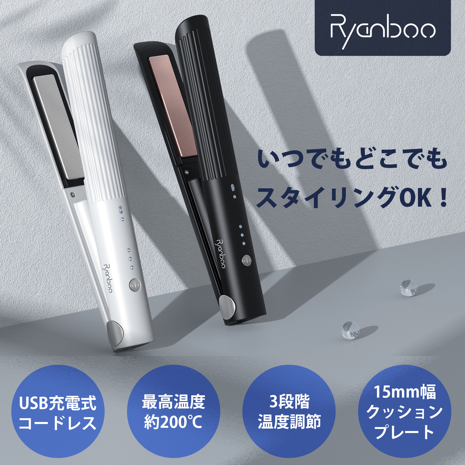 【限定セール】ヘアアイロン コードレスヘアアイロン USB充電式 ストレート ミニ コンパクト カール 2way 持ち運び用 前髪 3段階温度調整 MAX200℃ 15mm